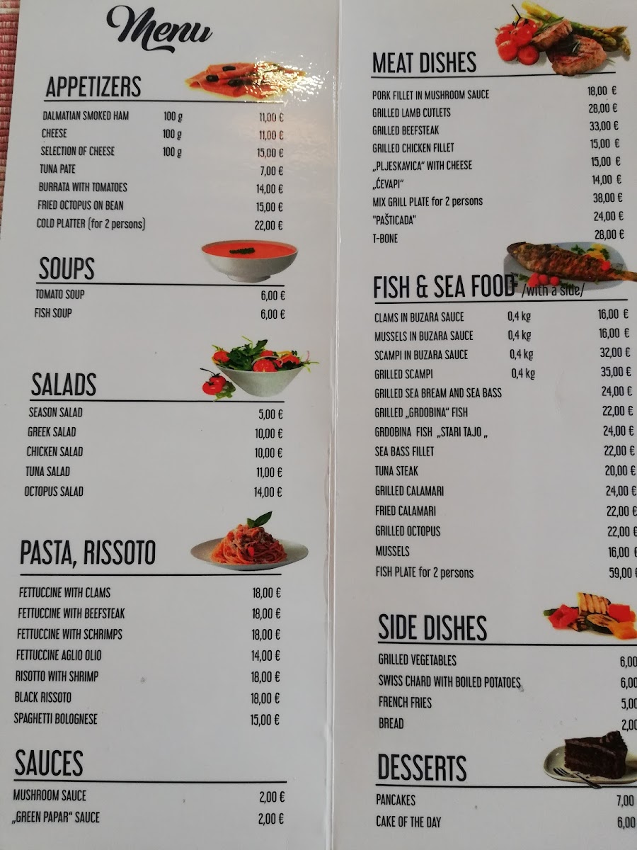 Konoba STARI TAJO in Primošten is a true gem for seafood lovers seeking authentic Croatian flavors. Nestled by the sea on Ul. Tezacka 4, this restaurant offers a menu rich with fresh, expertly prepared dishes that celebrate the Adriatic’s bounty. Highlights include the iconic fish soup, praised for its rich, hearty broth, and the varied seafood plates that diners rave about for their freshness and vibrant taste. Portions are generous, with dishes like spaghetti bolognese also standing out for their comforting, cheesy goodness.